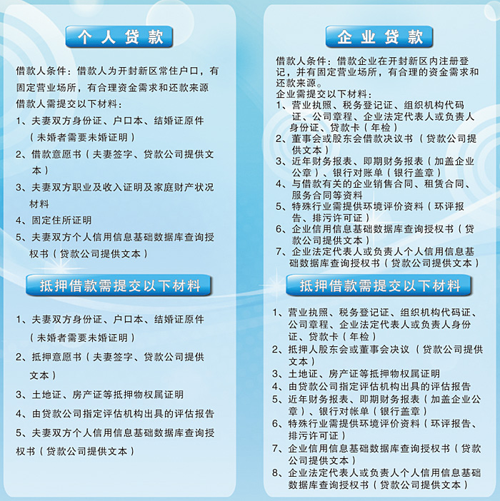 開封市開封新區(qū)開寶小額貸款有限公司(以下簡(jiǎn)稱開寶小貸)是一家民營(yíng)股份制公司,注冊(cè)資金壹億元。公司主營(yíng)業(yè)務(wù)為辦理小額貸款,提供財(cái)務(wù)咨詢等,同時(shí)滿足中小企業(yè)短期資金需求。公司嚴(yán)格按照“只貸不存”的原則,以自有資金發(fā)放貸款;竭誠(chéng)為中小企業(yè)、個(gè)體工商戶提供支持與幫助。