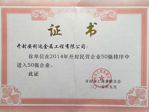 我公司榮獲2014年度開封市民營企業(yè)50強 |