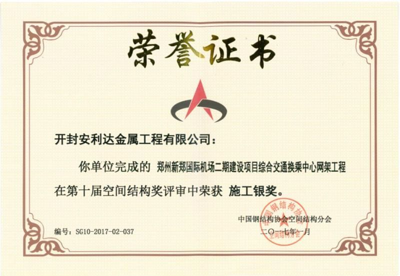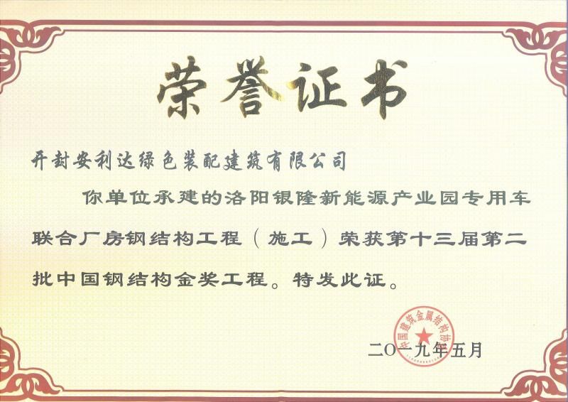 洛陽銀隆鋼結(jié)構(gòu)金獎
