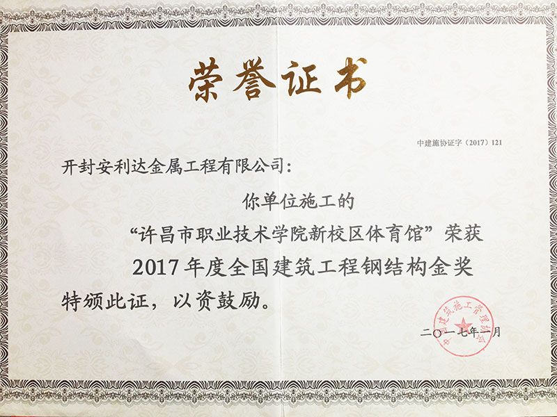 許昌職業(yè)技術(shù)學院鋼結(jié)構(gòu)金獎