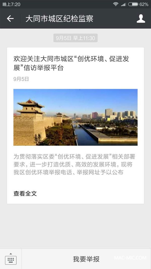 大同城區(qū)“創(chuàng)優(yōu)環(huán)境、促進(jìn)發(fā)展” 信訪舉報微信服務(wù)平臺開通