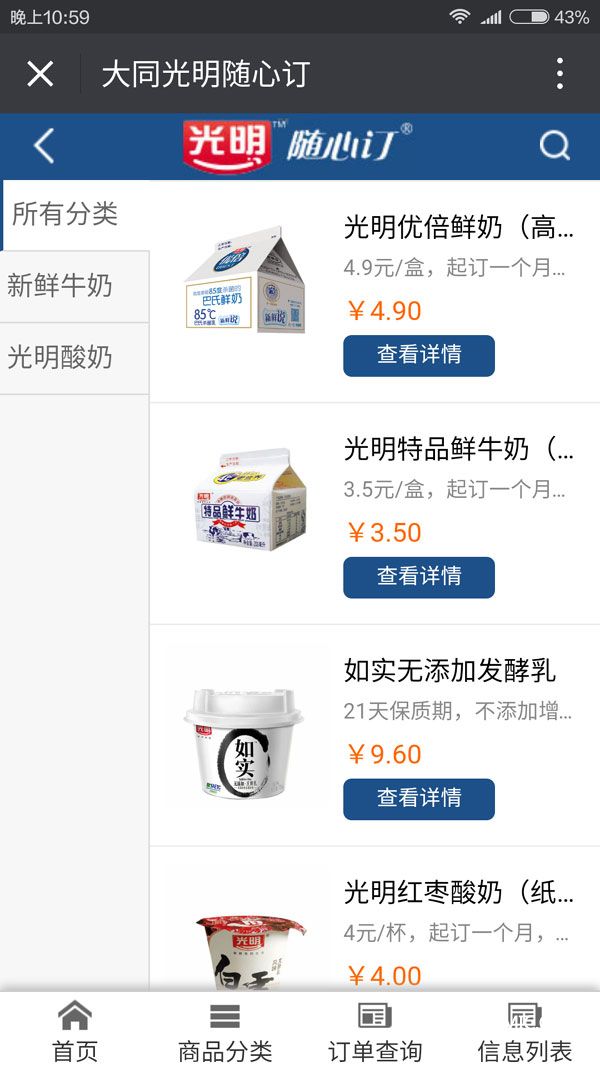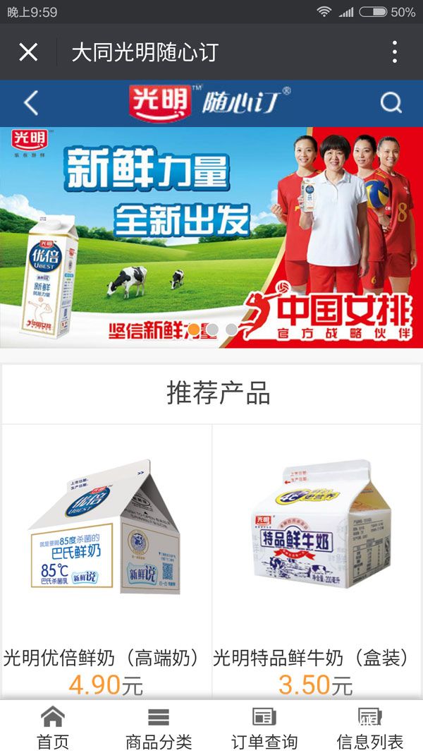 經(jīng)過緊張的開發(fā)和功能調試,近日,大同光明巴氏鮮奶隨心訂公眾平臺正式上線。