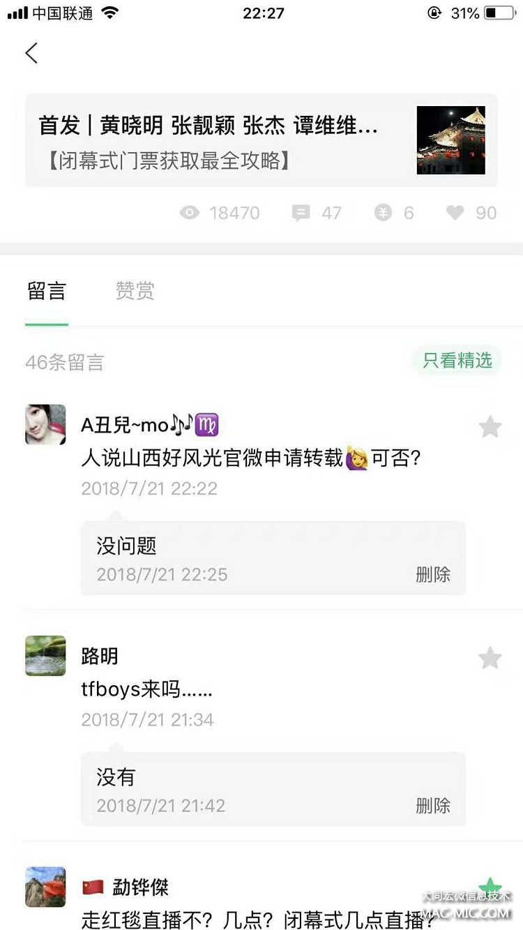 在獲得小編同意并授權(quán)后,當(dāng)晚11:30分左右,由新大同原創(chuàng)《首發(fā) | 黃曉明 張靚穎 張杰 譚維維 白百何...成龍電影周閉幕式最強(qiáng)陣容》在人說(shuō)山西好風(fēng)光官微發(fā)送,將成龍電影周閉幕式消息分享給全國(guó)、全世界的粉絲。