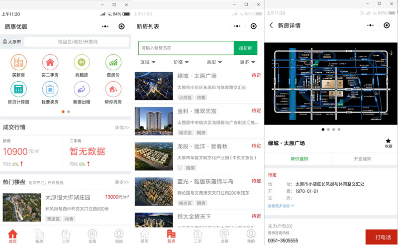 新優(yōu)居的智能化體現(xiàn)在方方面面,不同設備來訪問網(wǎng)站前臺時,自動顯示與之最相適應的界面。并將房產(chǎn)數(shù)據(jù)以電腦端+手機端+微信端+小程序+APP(開發(fā)中)的不同形式