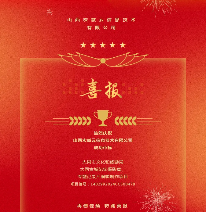 山西宏微云信息技術(shù)有限公司成功中標(biāo)大同市文化和旅游局大同古城紀(jì)實攝影集、專題記錄片編輯制作項目