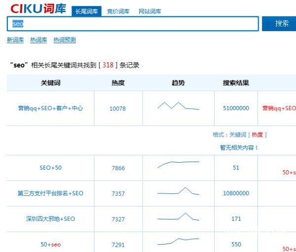 很明顯,上面的原理在這個網(wǎng)站上并沒有發(fā)揮效果,一萬多指數(shù)的關(guān)鍵詞排在第一可不是這樣的,那為什么50+seo就行,seo+協(xié)會+網(wǎng)就不行呢?原因很簡單,權(quán)重是第三方站長工具查出來的,所以這個關(guān)鍵詞一定要存在于該站長工具的詞庫,不然是沒有任何效果的。