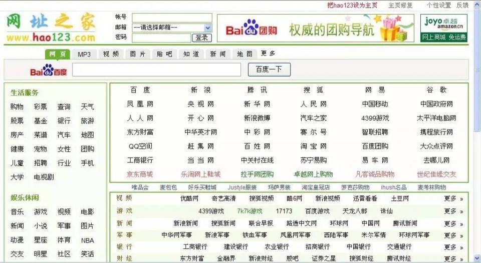 跟它的名字一樣,Hao123頁面非常簡單,只有各類網(wǎng)站的導(dǎo)航列表。