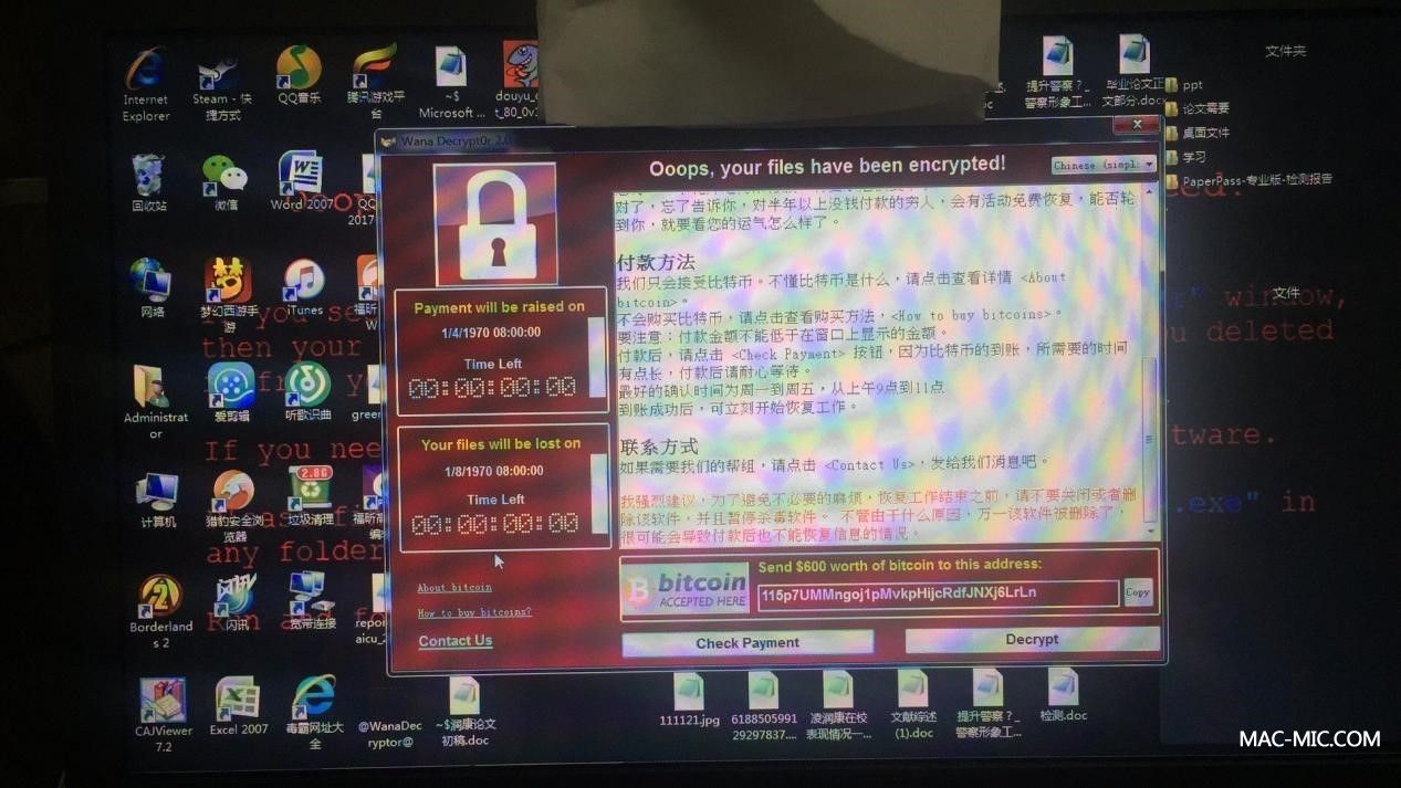 目前,“永恒之藍(lán)”傳播的勒索病毒以O(shè)NION和WNCRY兩個(gè)家族為主,受害機(jī)器的磁盤文件會被篡改為相應(yīng)的后綴,圖片、文檔、視頻、壓縮包等各類資料都無法正常打開,只有支付贖金才能解密恢復(fù)。這兩類勒索病毒,勒索金額分別是5個(gè)比特幣和300美元,折合人民幣分別為5萬多元和2000多元。