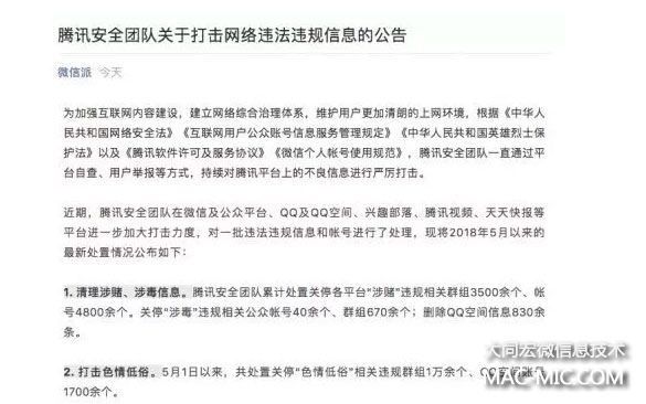 騰訊今日宣布關(guān)閉多平臺帳號累計4800余個 審查 移動互聯(lián)網(wǎng) 微信 微新聞 第1張