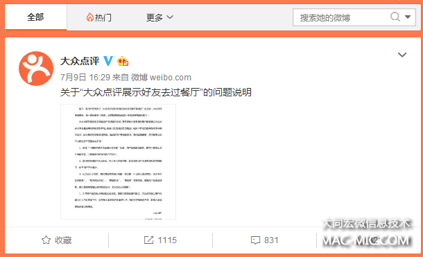 在7月9日的聲明中,大眾點(diǎn)評稱,大眾點(diǎn)評打造好友關(guān)系鏈類產(chǎn)品功能的初衷,是希望有分享意愿的用戶能夠通過大眾點(diǎn)評分享在生活中獲得的美好體驗(yàn),“但我們也發(fā)現(xiàn)這類功能設(shè)計(jì)在用戶體驗(yàn)方面存在考慮不周的地方,這與我們的初衷背道而馳。”