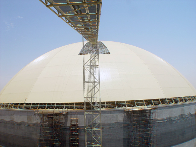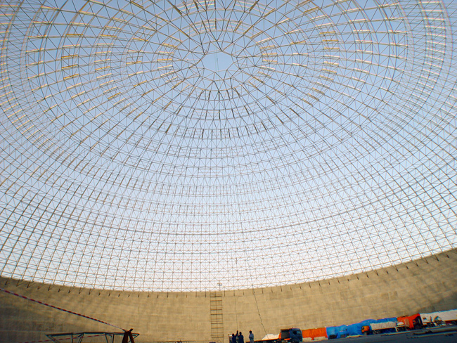 工程特點(diǎn):球冠直徑 D=176.8米(跨度)  球冠高度 h=80米。